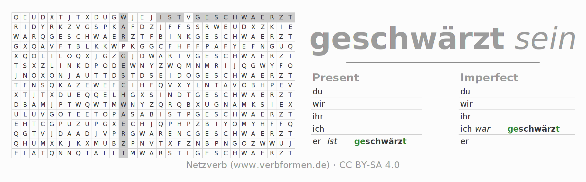 With these search word puzzles you can learn the conjugation of the German verb schwärzen.