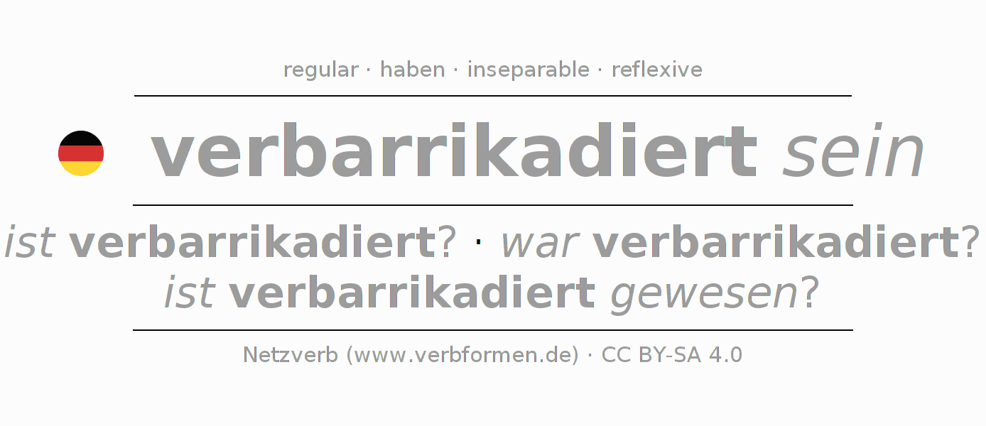 These verb tables summarize all verb forms of sich verbarrikadieren verbatim in a table.