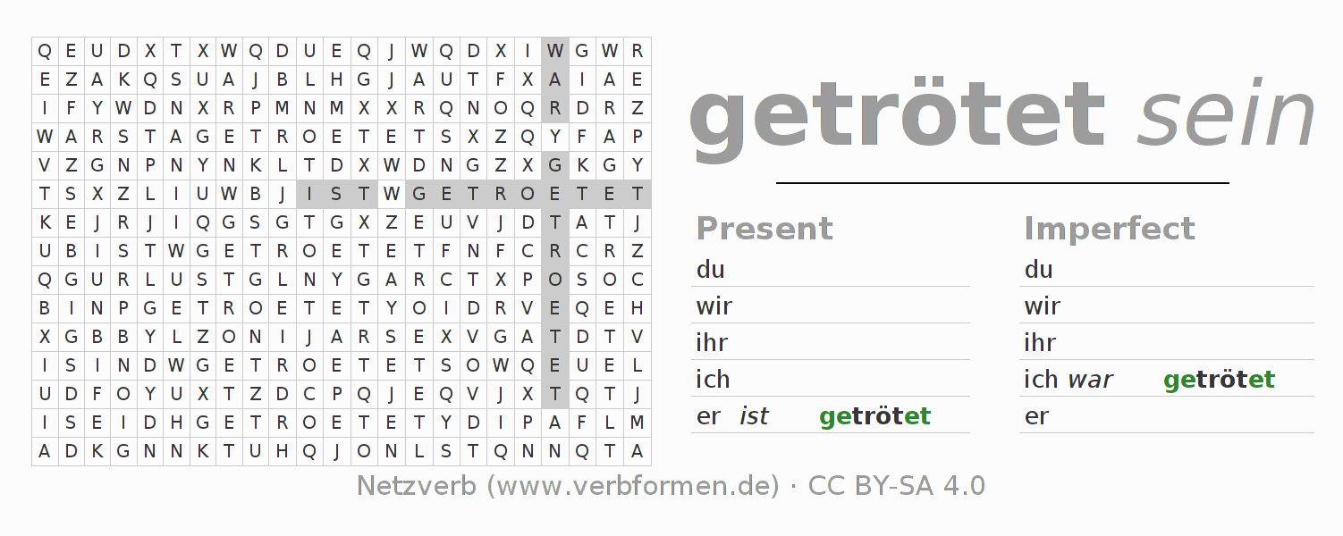 With these search word puzzles you can learn the conjugation of the German verb tröten.