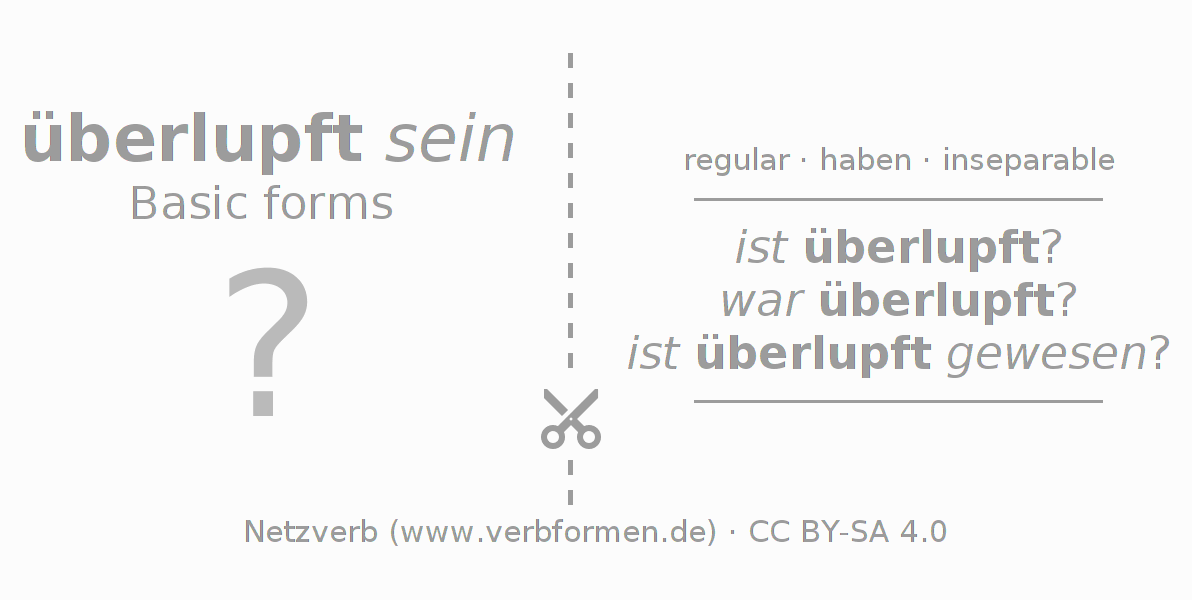 Worksheets are used generally for the conjugation of the verb überlupfen in teaching. The materials can be used as Open Educational Resources (OER) for exercises, for games and as Tasks (CC BY-SA 4.0). There are many different types of tasks available for the verb überlupfen. These are overview sheets with complete conjugation, puzzles and games that require joint learning. The entire educational material is available for free as a PDF download, as pictures and as an interactive browser version. In addition to the tasks, countless examples for überlupfen also provide an aid to using the verb.
