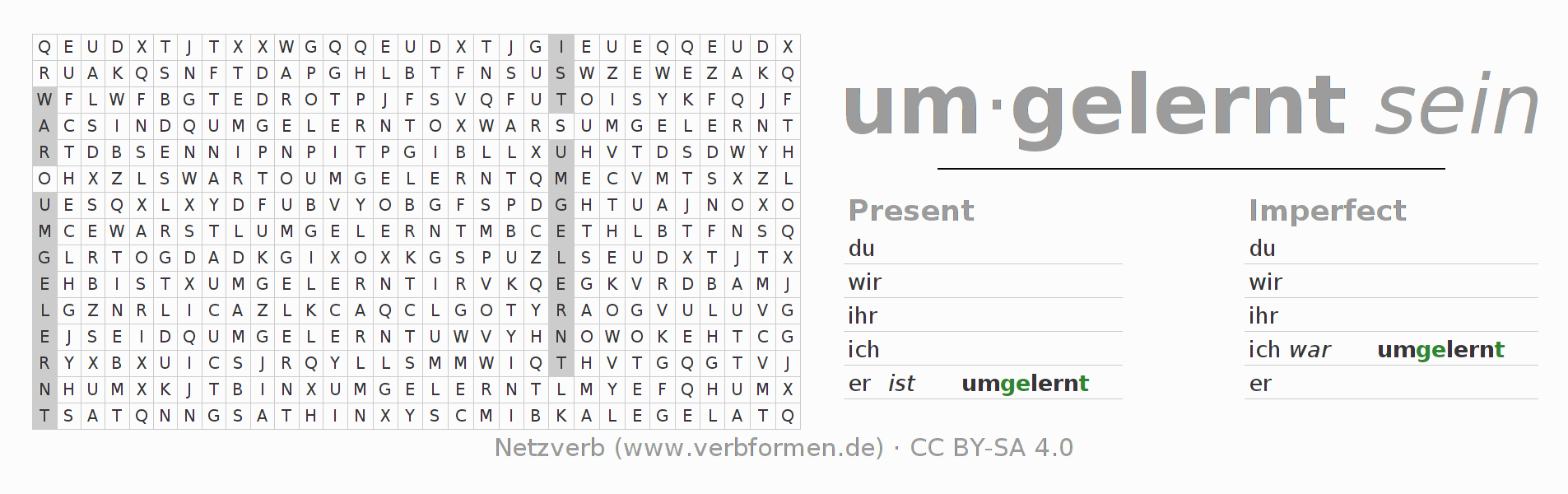 With these search word puzzles you can learn the conjugation of the German verb umlernen.