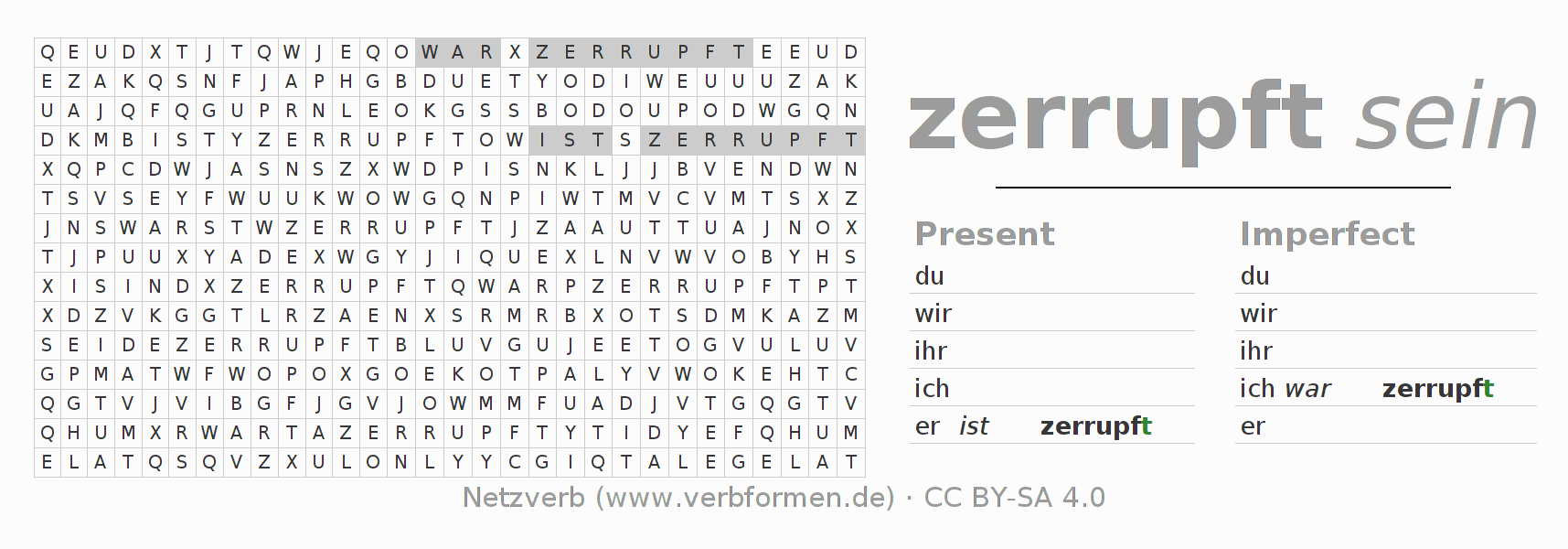 With these search word puzzles you can learn the conjugation of the German verb zerrupfen.