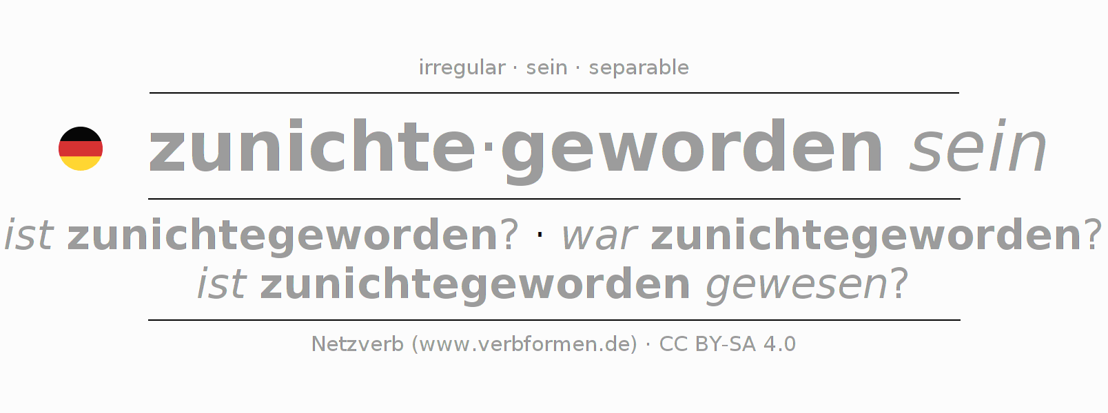 Conjugation tables for all tenses of the verb zunichtewerden