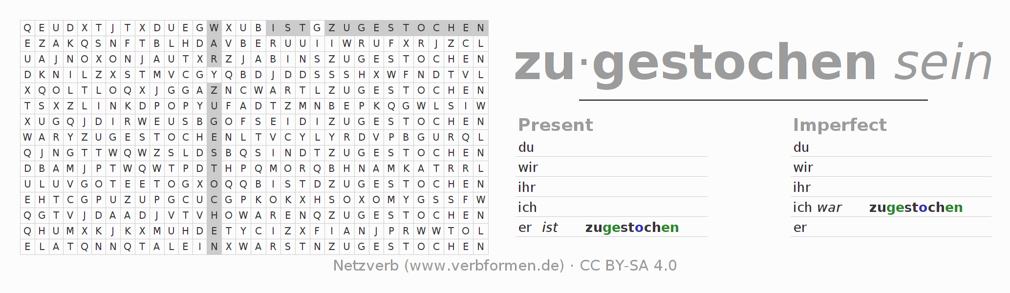 With these search word puzzles you can learn the conjugation of the German verb zustechen.