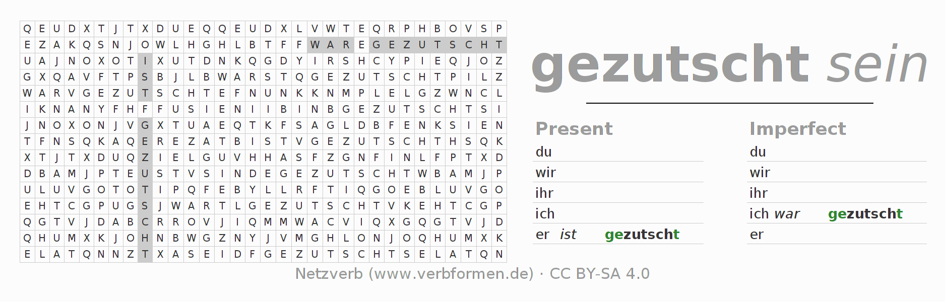 With these search word puzzles you can learn the conjugation of the German verb zutschen.
