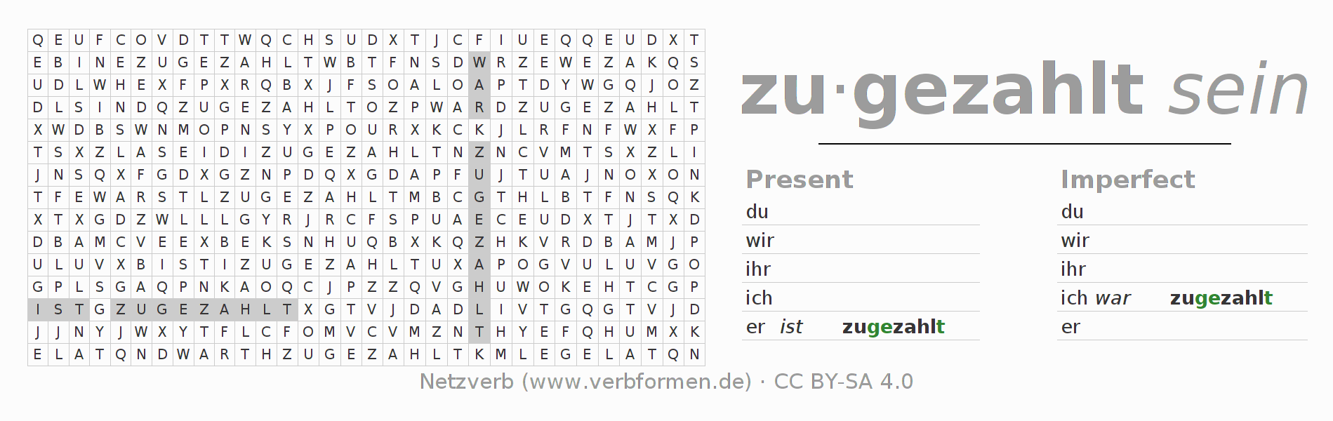With these search word puzzles you can learn the conjugation of the German verb zuzahlen.