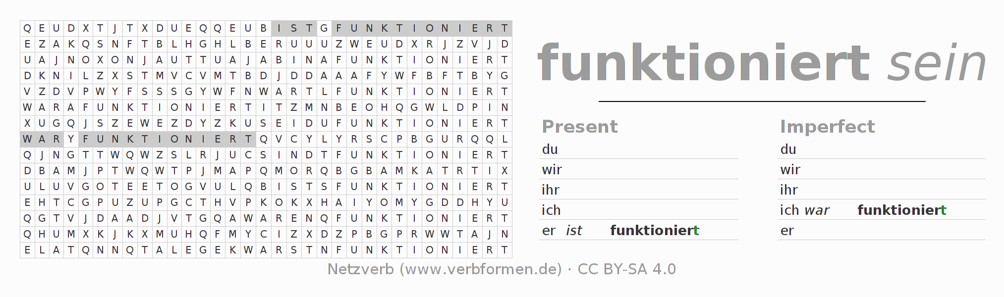With these search word puzzles you can learn the conjugation of the German verb funktionieren.