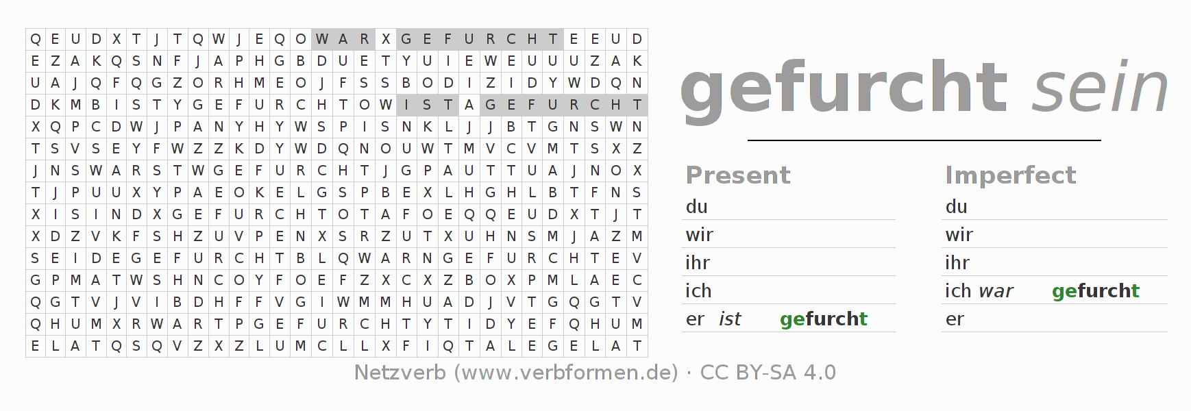 With these search word puzzles you can learn the conjugation of the German verb furchen.