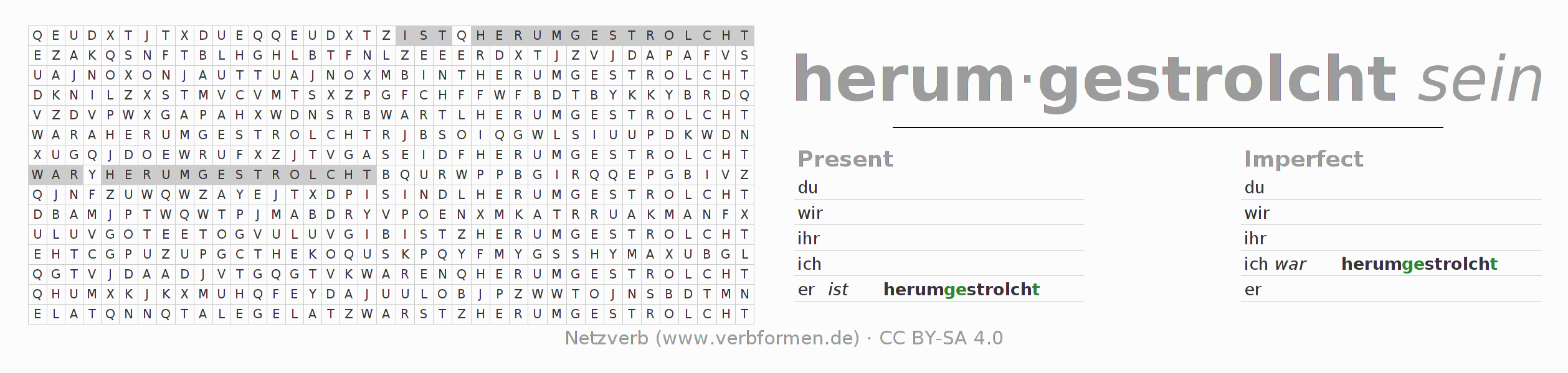 With these search word puzzles you can learn the conjugation of the German verb herumstrolchen.