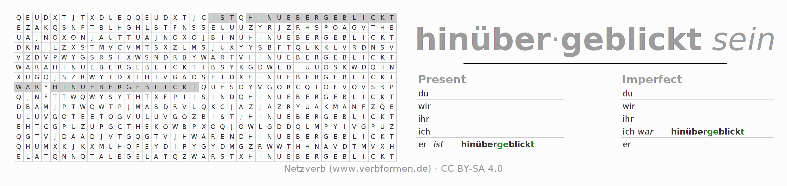 With these search word puzzles you can learn the conjugation of the German verb hinüberblicken.