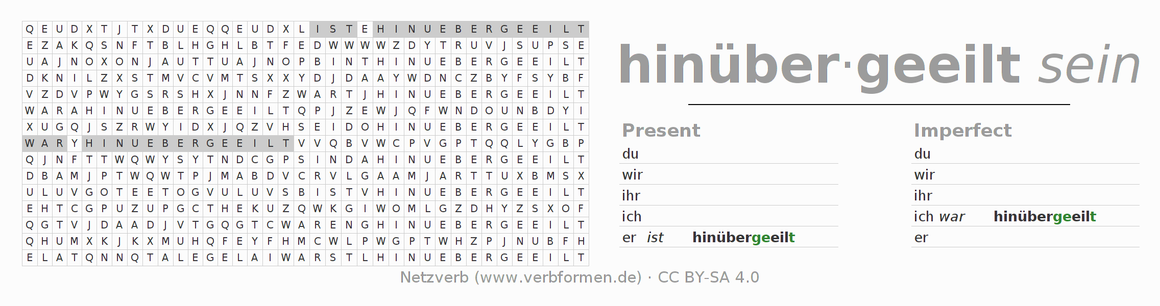 With these search word puzzles you can learn the conjugation of the German verb hinübereilen.