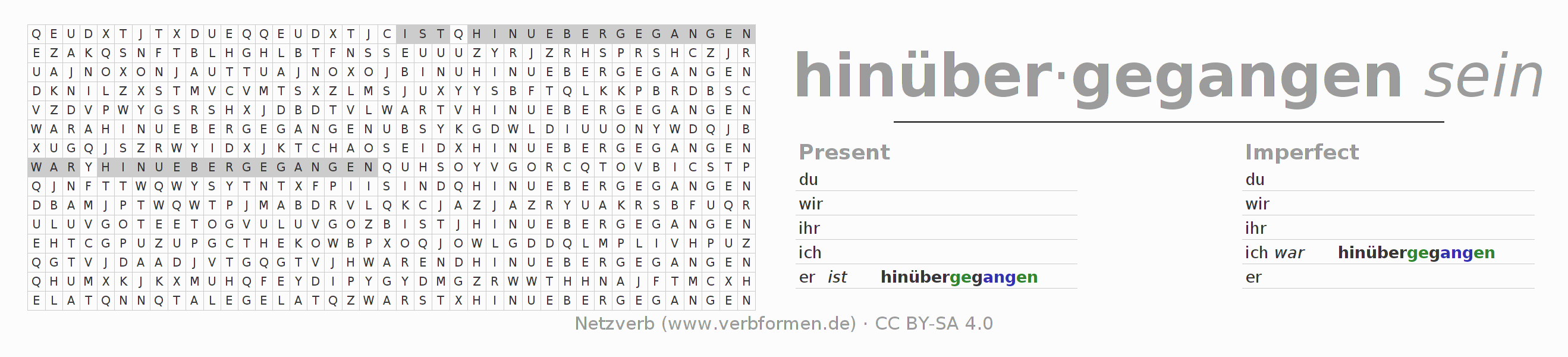 With these search word puzzles you can learn the conjugation of the German verb hinübergehen.