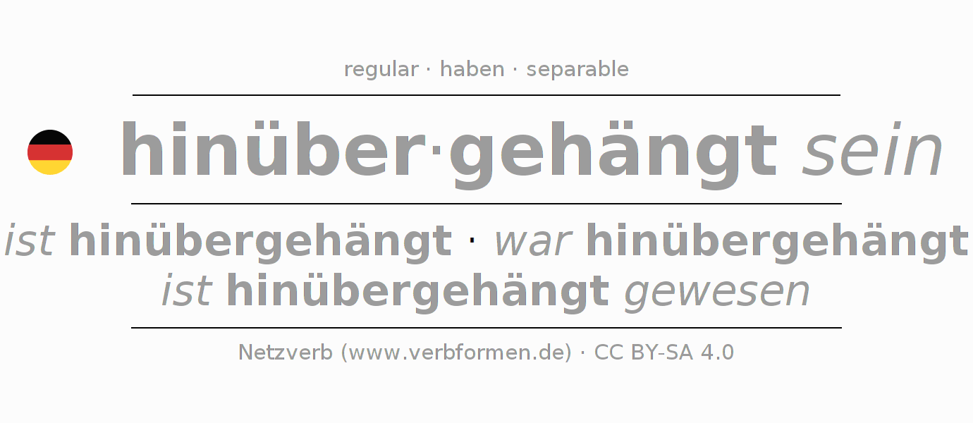 Flash cards, learning cards, learning notes for all tenses of the verb hinüberhängen (regelm)