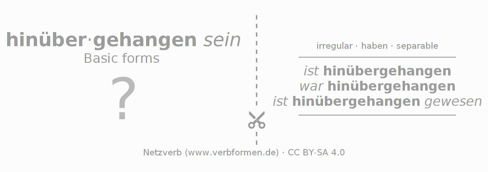Conjugation tables for all tenses of the verb hinüberhängen (unr)