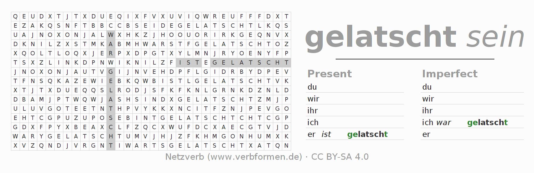 With these search word puzzles you can learn the conjugation of the German verb latschen.
