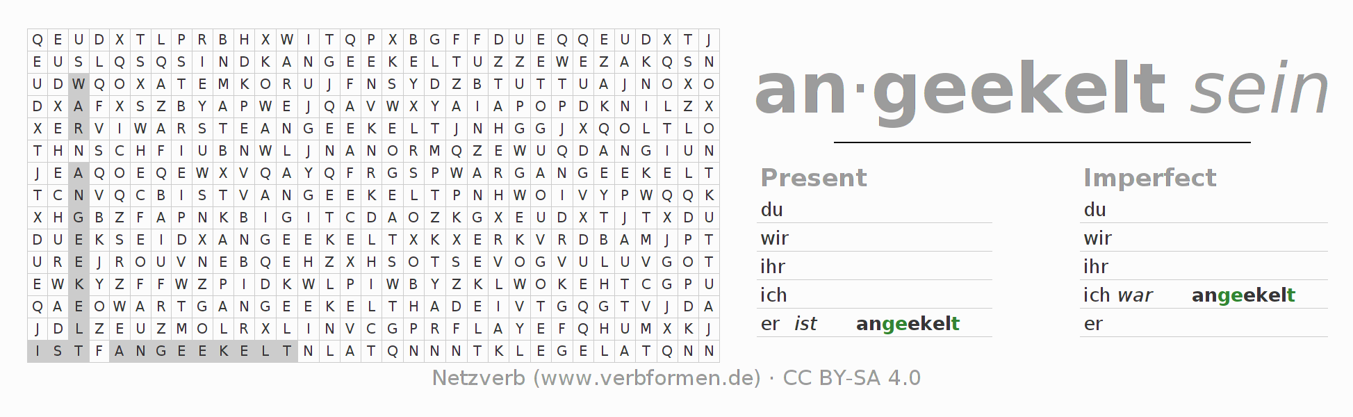 With these search word puzzles you can learn the conjugation of the German verb anekeln.