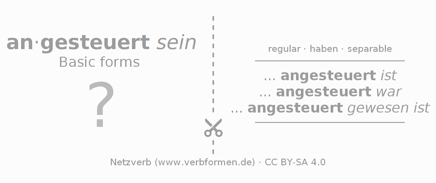 Worksheets are used generally for the conjugation of the verb ansteuern in teaching. The materials can be used as Open Educational Resources (OER) for exercises, for games and as Tasks (CC BY-SA 4.0). There are many different types of tasks available for the verb ansteuern. These are overview sheets with complete conjugation, puzzles and games that require joint learning. The entire educational material is available for free as a PDF download, as pictures and as an interactive browser version. In addition to the tasks, countless examples for ansteuern also provide an aid to using the verb.