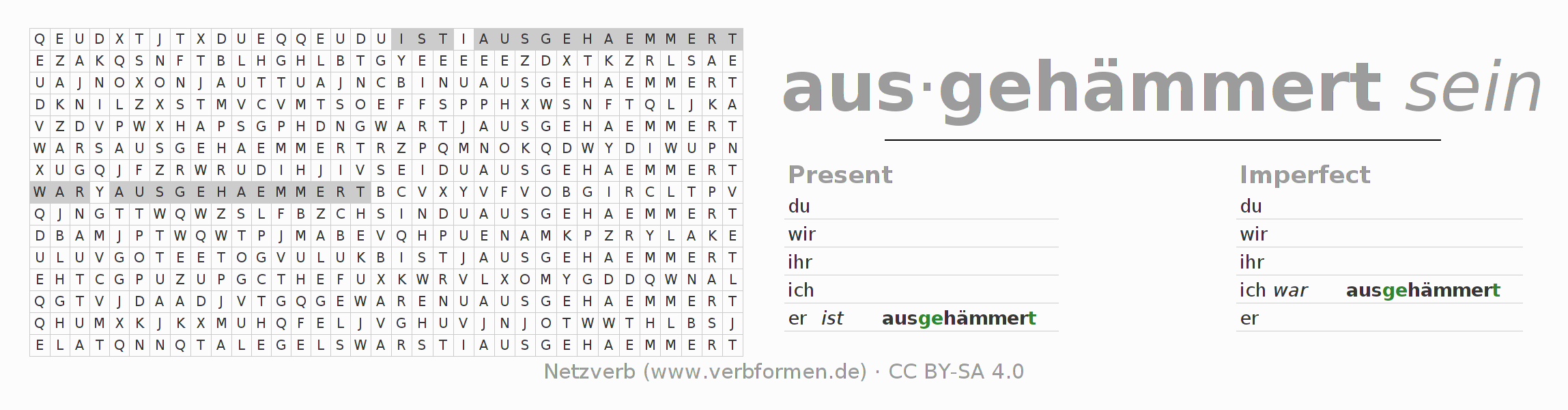 With these search word puzzles you can learn the conjugation of the German verb aushämmern.