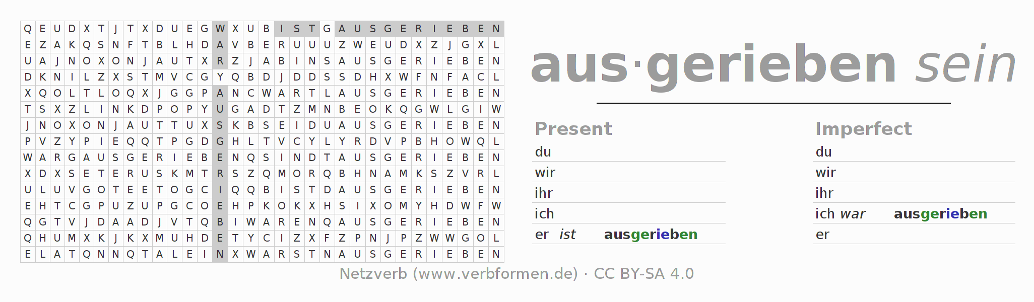 With these search word puzzles you can learn the conjugation of the German verb ausreiben.