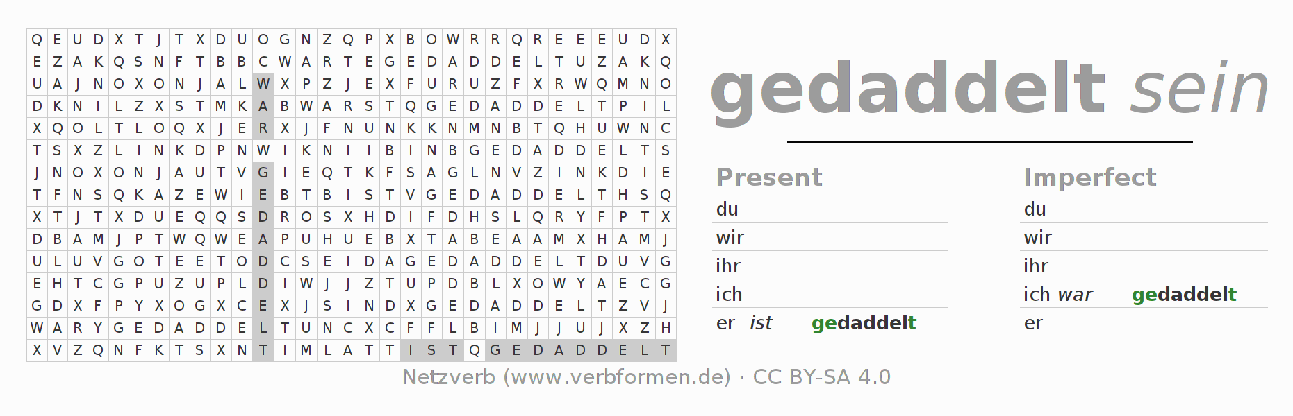 With these search word puzzles you can learn the conjugation of the German verb daddeln.