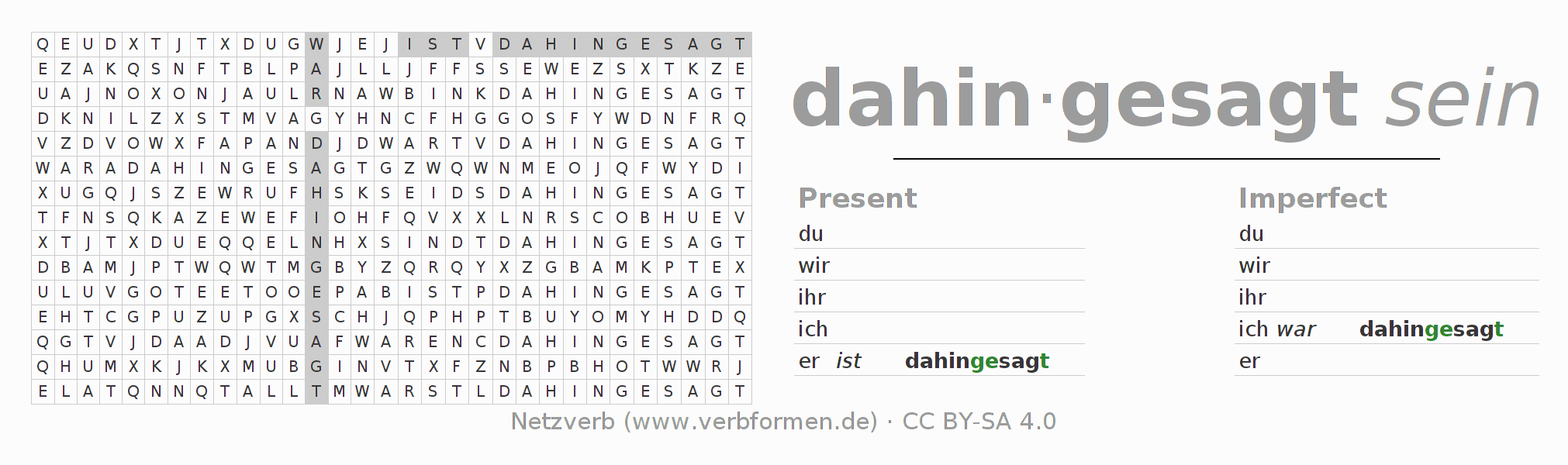 With these search word puzzles you can learn the conjugation of the German verb dahinsagen.