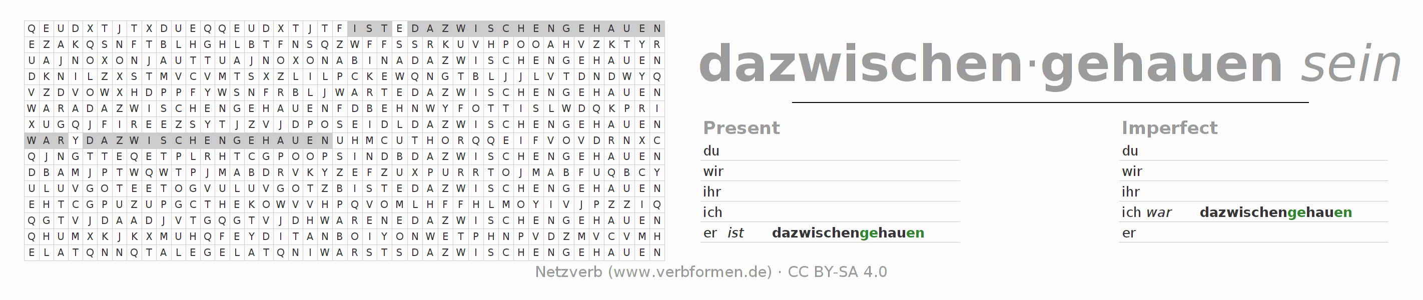 With these search word puzzles you can learn the conjugation of the German verb dazwischenhauen.
