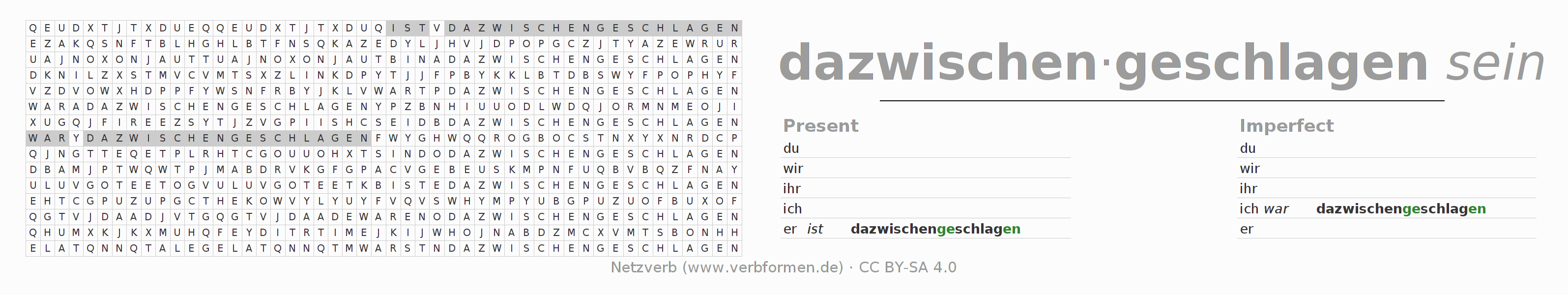 With these search word puzzles you can learn the conjugation of the German verb dazwischenschlagen.