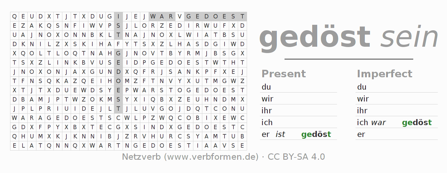 With these search word puzzles you can learn the conjugation of the German verb dösen.