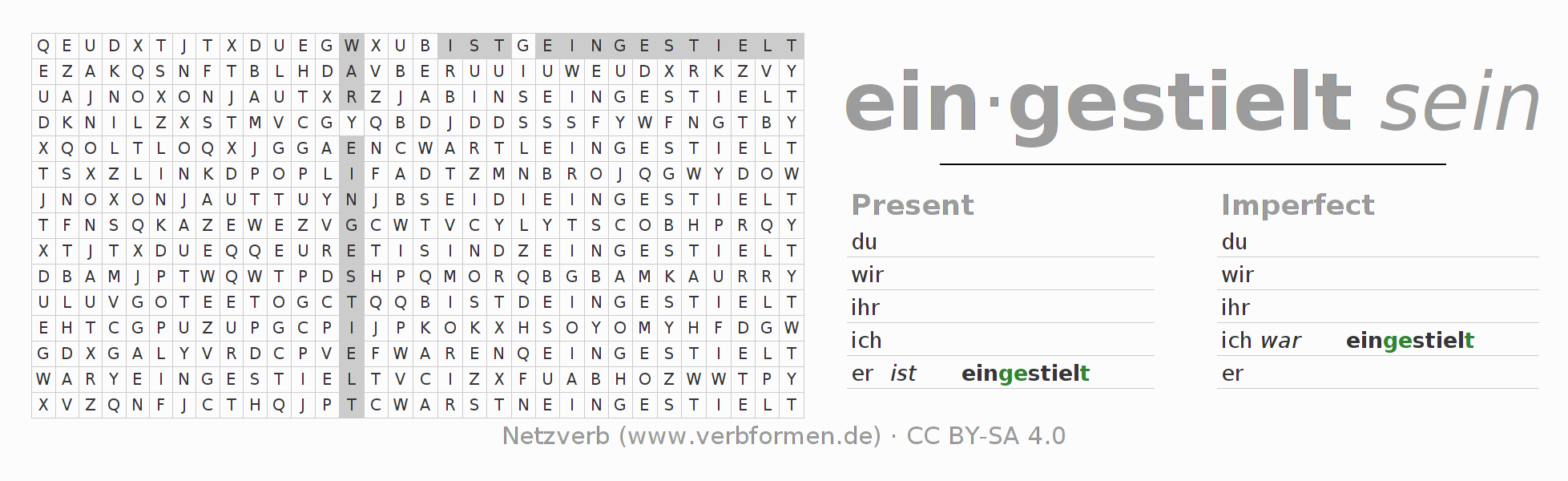 With these search word puzzles you can learn the conjugation of the German verb einstielen.