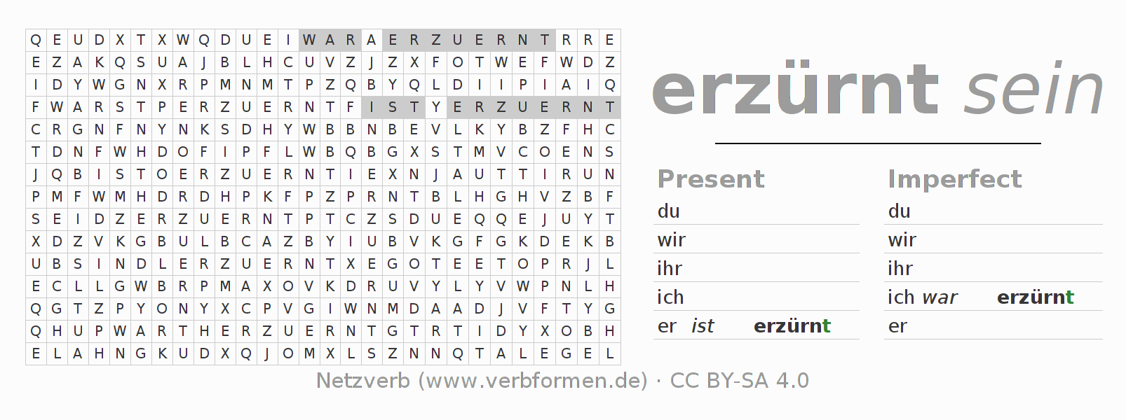 With these search word puzzles you can learn the conjugation of the German verb erzürnen.