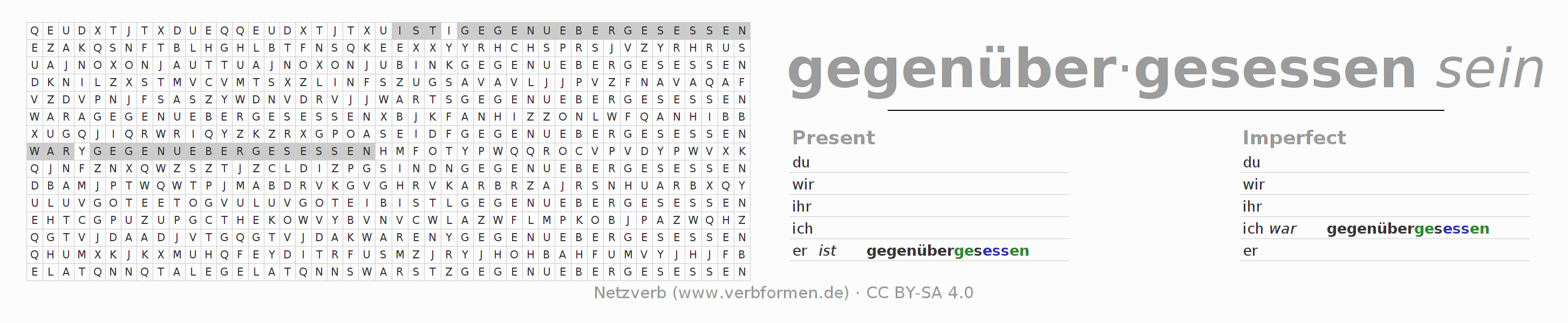 With these search word puzzles you can learn the conjugation of the German verb gegenübersitzen.
