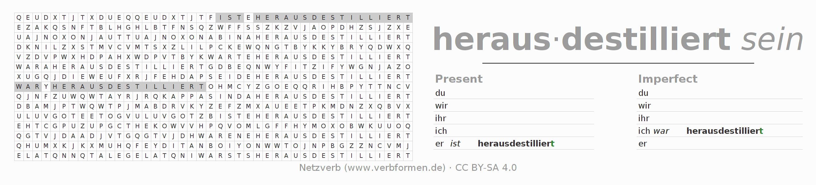 With these search word puzzles you can learn the conjugation of the German verb herausdestillieren.