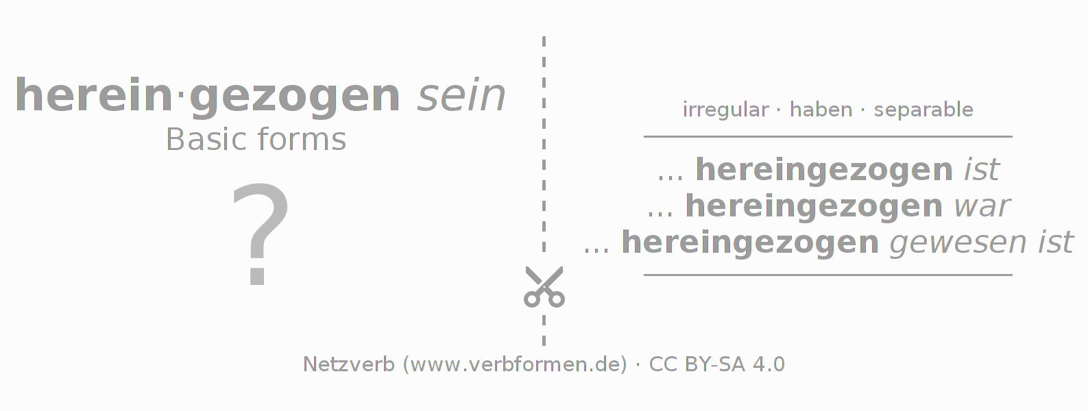 Conjugation tables for all tenses of the verb hereinziehen (hat)