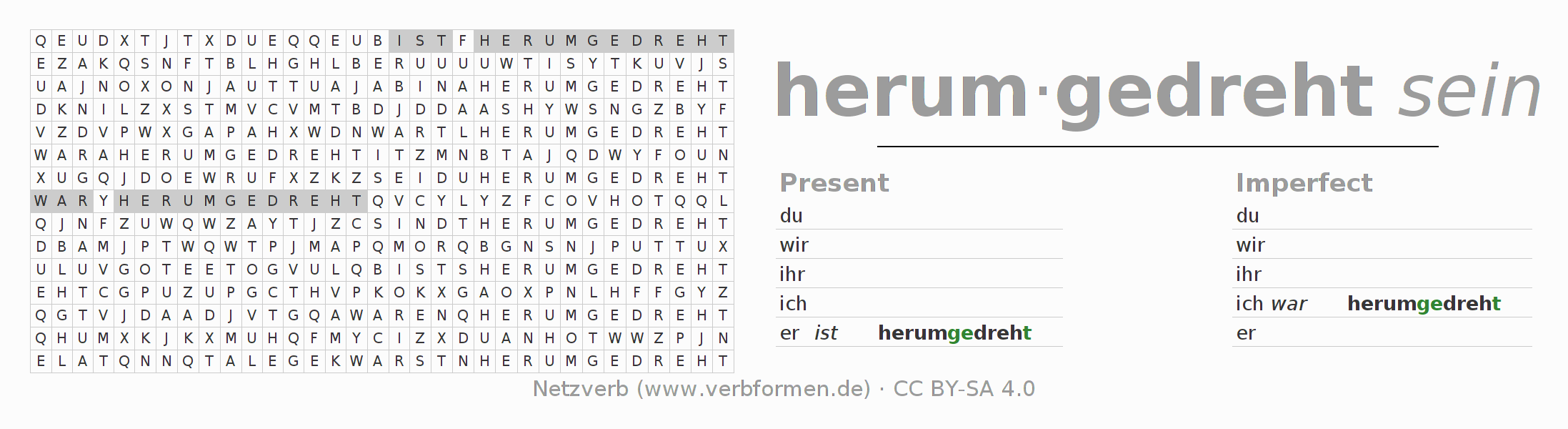 With these search word puzzles you can learn the conjugation of the German verb herumdrehen.