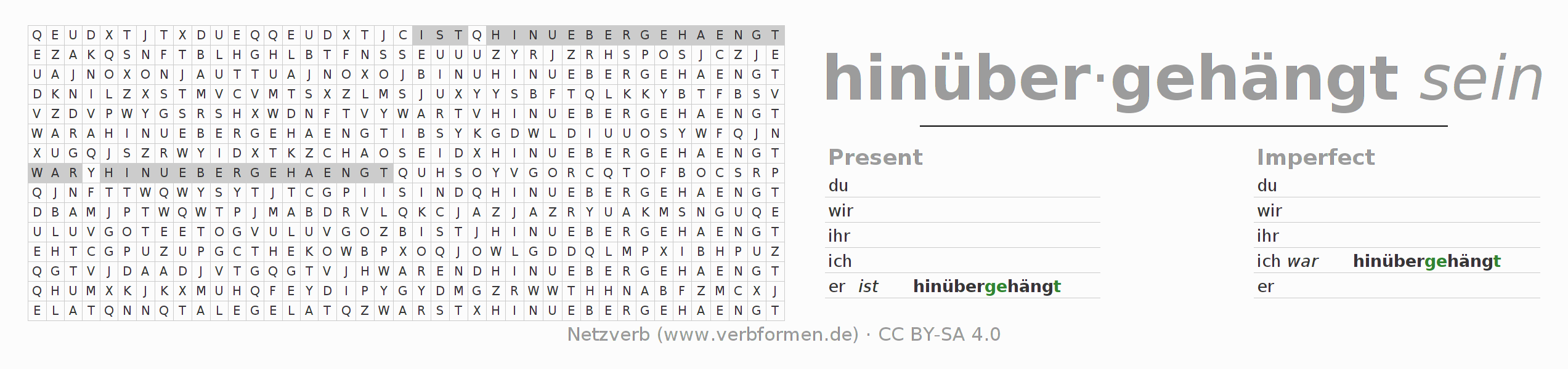 With these search word puzzles you can learn the conjugation of the German verb hinüberhängen.