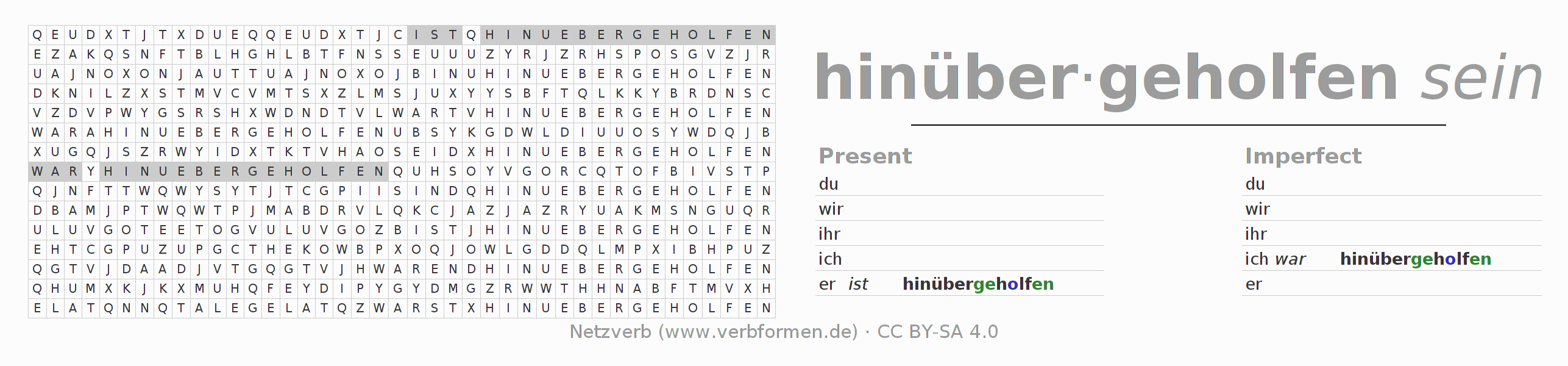 With these search word puzzles you can learn the conjugation of the German verb hinüberhelfen.