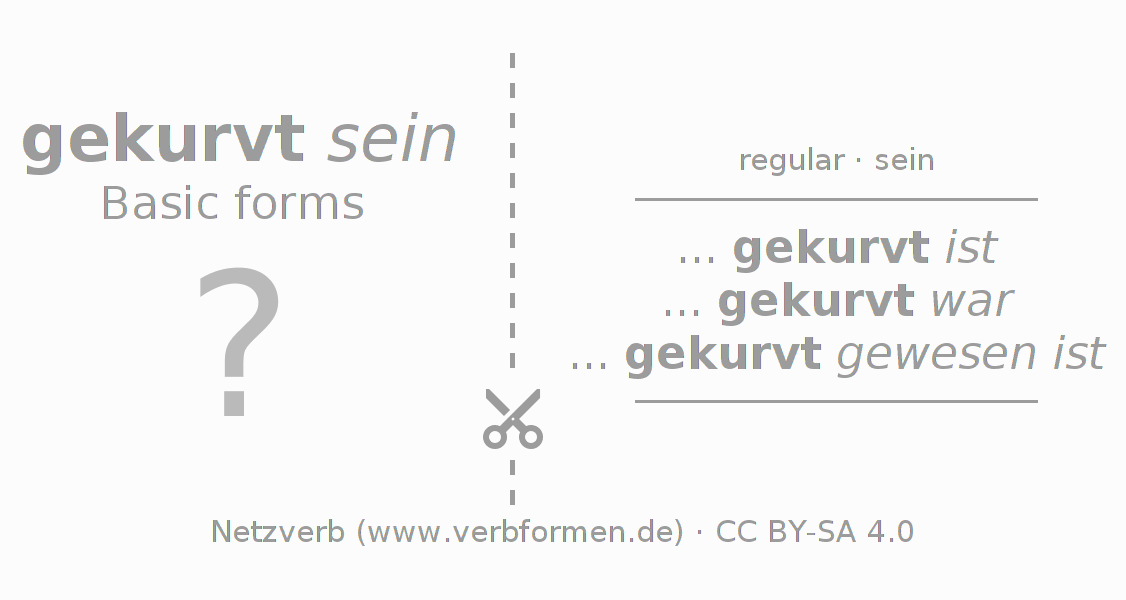 Worksheets are used generally for the conjugation of the verb kurven in teaching. The materials can be used as Open Educational Resources (OER) for exercises, for games and as Tasks (CC BY-SA 4.0). There are many different types of tasks available for the verb kurven (ist). These are overview sheets with complete conjugation, puzzles and games that require joint learning. The entire educational material is available for free as a PDF download, as pictures and as an interactive browser version. In addition to the tasks, countless examples for kurven also provide an aid to using the verb.