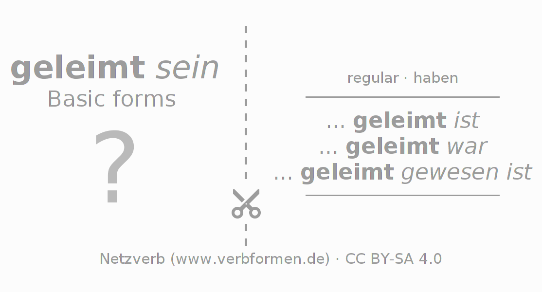 Worksheets are used generally for the conjugation of the verb leimen in teaching. The materials can be used as Open Educational Resources (OER) for exercises, for games and as Tasks (CC BY-SA 4.0). There are many different types of tasks available for the verb leimen. These are overview sheets with complete conjugation, puzzles and games that require joint learning. The entire educational material is available for free as a PDF download, as pictures and as an interactive browser version. In addition to the tasks, countless examples for leimen also provide an aid to using the verb.