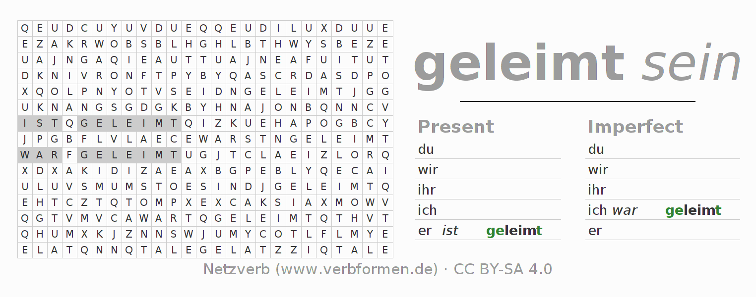 With these search word puzzles you can learn the conjugation of the German verb leimen.