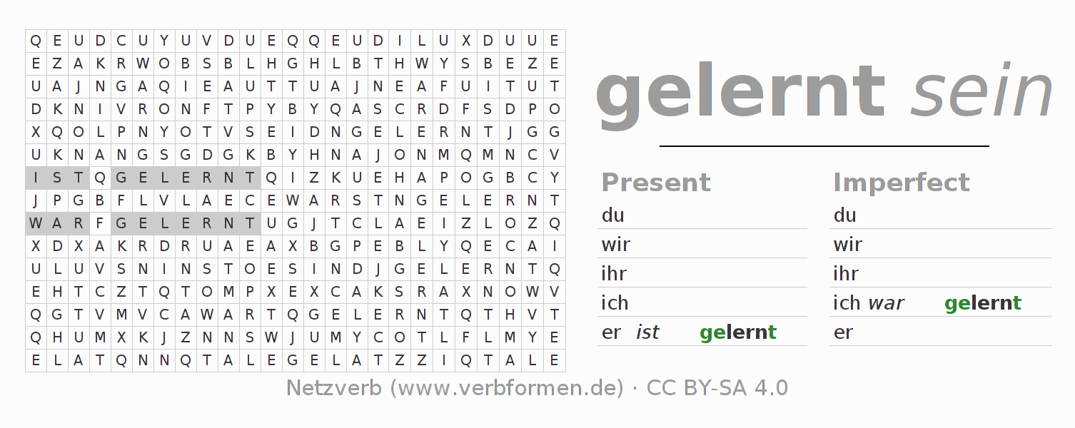 With these search word puzzles you can learn the conjugation of the German verb lernen.