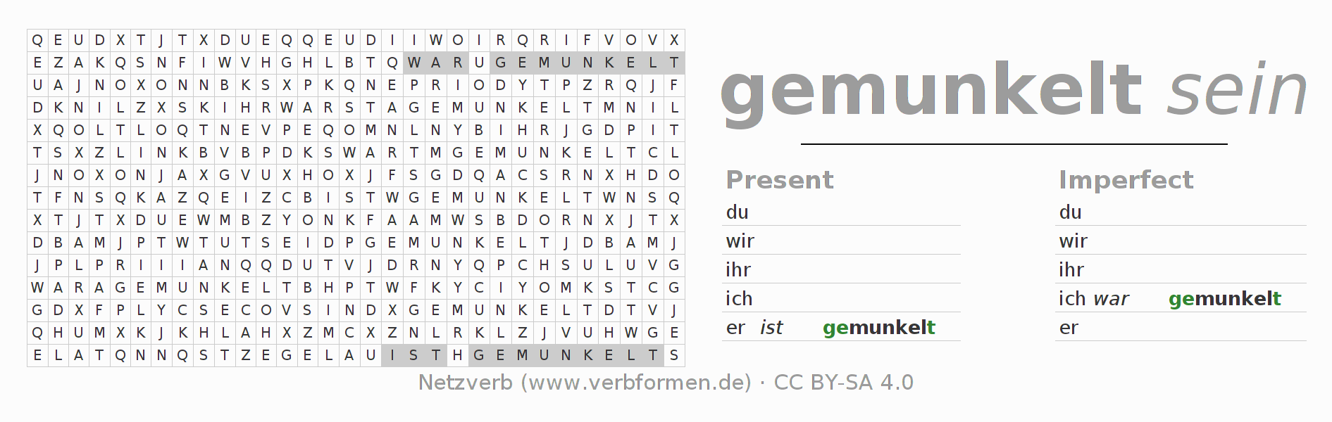 With these search word puzzles you can learn the conjugation of the German verb munkeln.