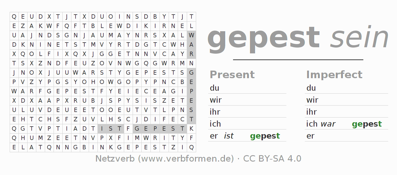 With these search word puzzles you can learn the conjugation of the German verb pesen.
