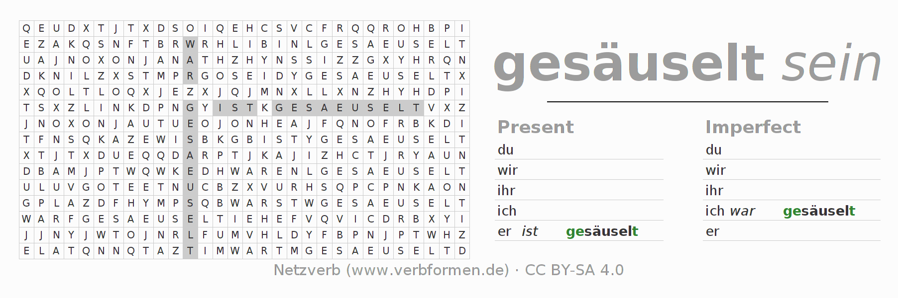 With these search word puzzles you can learn the conjugation of the German verb säuseln.