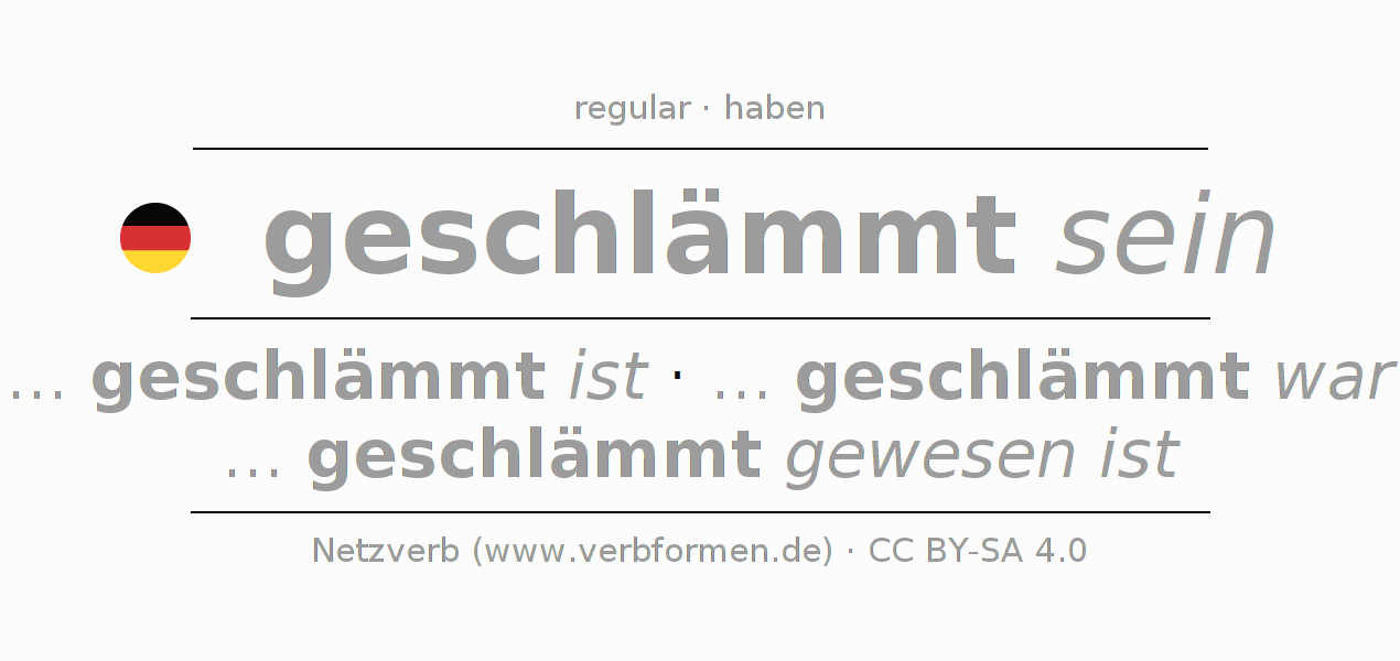 Worksheets are used generally for the conjugation of the verb schlämmen in teaching. The materials can be used as Open Educational Resources (OER) for exercises, for games and as Tasks (CC BY-SA 4.0). There are many different types of tasks available for the verb schlämmen. These are overview sheets with complete conjugation, puzzles and games that require joint learning. The entire educational material is available for free as a PDF download, as pictures and as an interactive browser version. In addition to the tasks, countless examples for schlämmen also provide an aid to using the verb.