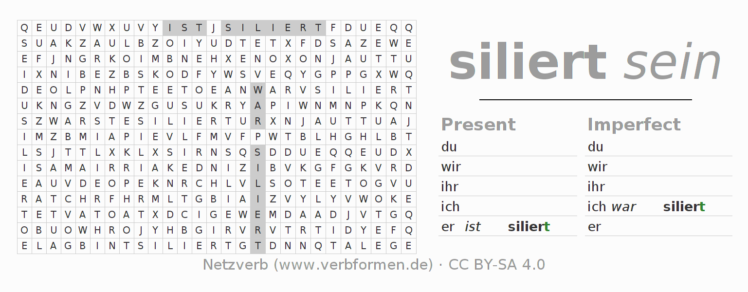 With these search word puzzles you can learn the conjugation of the German verb silieren.