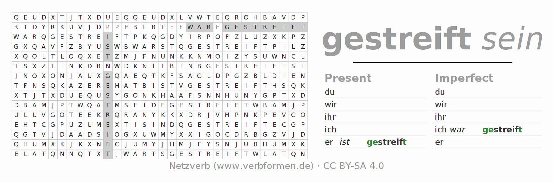 With these search word puzzles you can learn the conjugation of the German verb streifen.