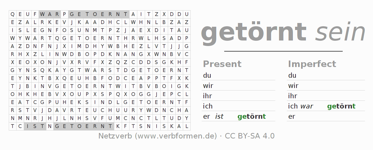 With these search word puzzles you can learn the conjugation of the German verb törnen.