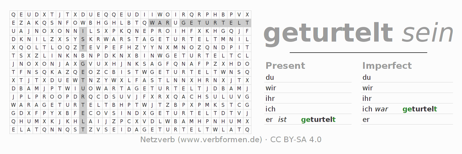 With these search word puzzles you can learn the conjugation of the German verb turteln.