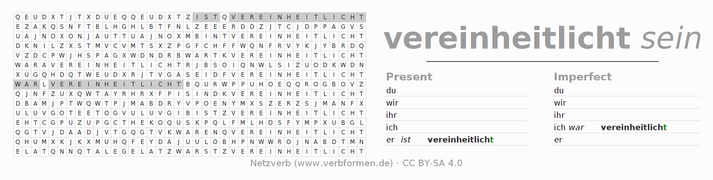 With these search word puzzles you can learn the conjugation of the German verb vereinheitlichen.