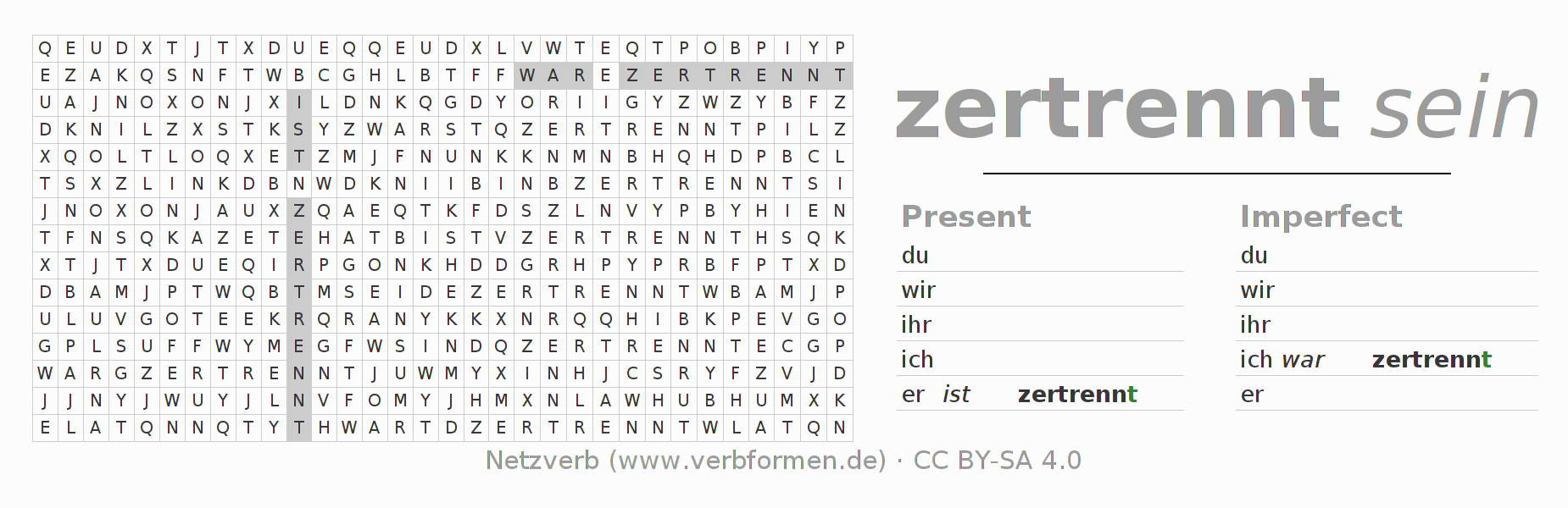 With these search word puzzles you can learn the conjugation of the German verb zertrennen.